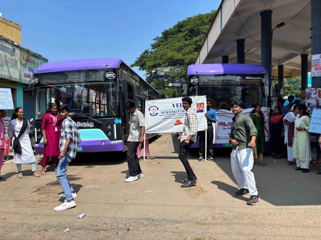 Women’s mental health and vaccination awareness program conducted at periyapalayam bus depot on 21/03/2025 organised by vel Nursing College