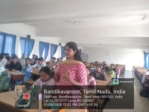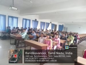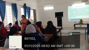 September 1, 2025, the orientation session for B.Sc. (Nursing) 2025 batch students was conducted.Dr. Sindhu Ramalingam.,M.Sc (Nsg).,P.hD, Associate Professor, Saveetha College of Nursing, presented on the topic “Professional Etiquettes in Nursing”.