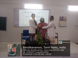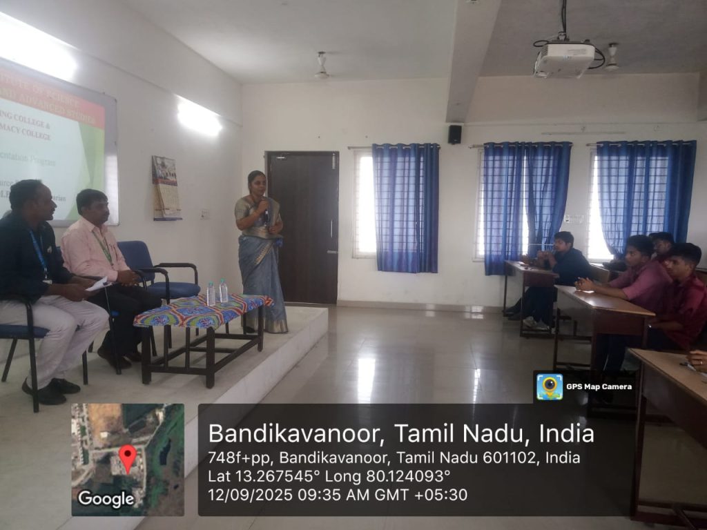 September 10, 2025, the orientation session for B.Sc. (Nursing) 2025 batch students was conducted. Dr. A. Vijayalakshmi, Professor, Department of Pharmacology, School of Pharmaceutical Sciences, VISTAS, presented on “Professional Development”