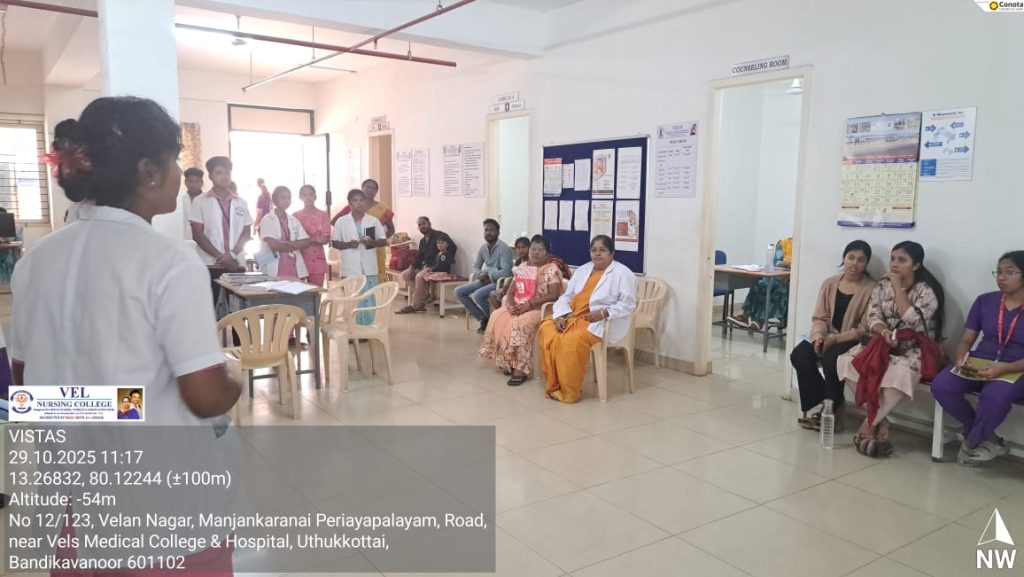 which was conducted on 17.09.2025 at Purasaiwakkam organized by Vel Nursing College.