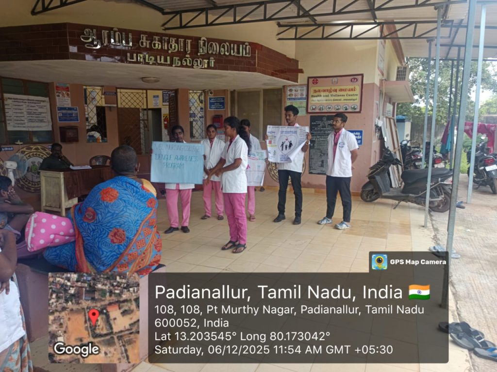 A Breastfeeding Awareness Programme was conducted at the Kavaraipetti Near Panchayat Office as part of breastfeeding celebration organized by Vel Nursing College for 100-days employment scheme workers and the general public. The event aimed to educate the community on the benefits of breastfeeding, proper techniques, and the need for family support